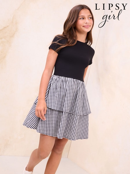 Lipsy Black 2-in-1 Gingham Tiered Dress (5-16yrs)