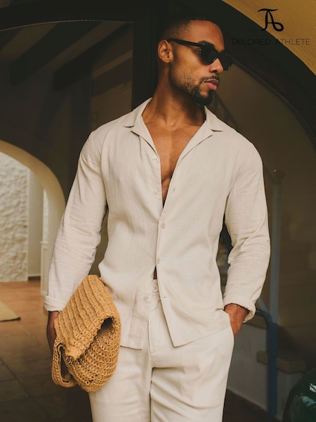 Tailored Athlete Natural Muscle Fit Stretch Linen Blend Cuban Collar Shirt