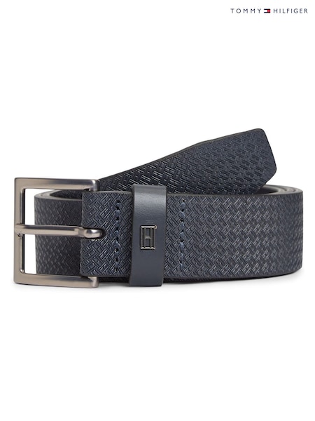 Tommy Hilfiger Blue Rounded Buckle Casual Woven Leather Belt
