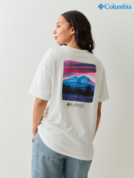 Columbia White Rolling Bend™ Graphic Oversized T-Shirt
