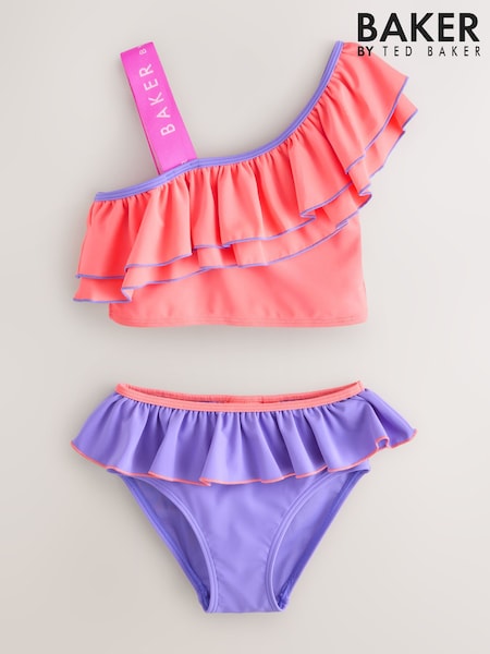 Baker by Ted Baker 2 Piece One Shoulder Contrast Frill Bikini