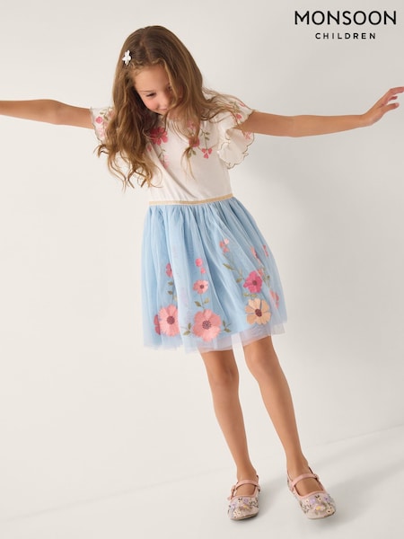 Monsoon rožasta disko obleka iz tila z vezenino
